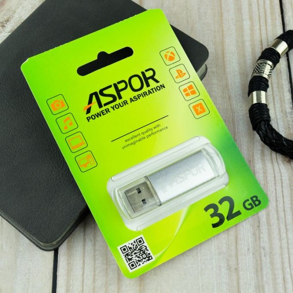 Flash Drive 32G USB 2.0 Aspor PK_ROCKETSL (серебро) нс