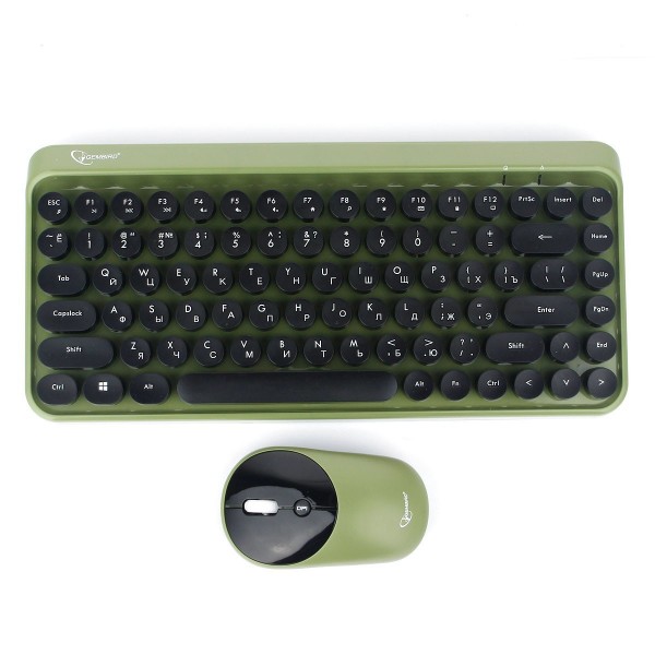 Клав.+ мышь Gembird KBS-9001 Khaki, Wireless, USB, лазерная гравировка клавиш, батарейки в комплекте